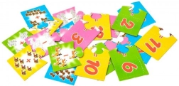 Kontrastowe kolory i duże elementy wspierają naukę wzrokową i koncentrację. Dzięki kształtowi puzzli pasują do siebie tylko właściwe pary – dziecko od razu widzi, że liczy poprawnie.