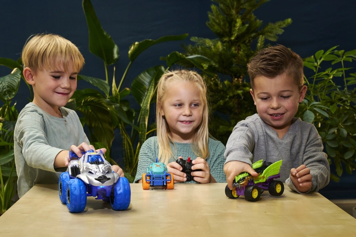 Pojazd Ice Monster z napędem na wolny bieg, funkcjami świetlnymi i dźwiękowymi, z działającym zawieszeniem i gumowymi kołami. Dodatkowo ma zbiornik na wodę, dzięki czemu wypuszcza parę przez otwór w masce. Długość: 25 cm