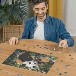 Puzzle ukazuje szczegółowy i realistyczny obraz dużej pandy, który zachwyci każdego miłośnika zwierząt.