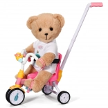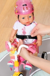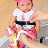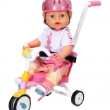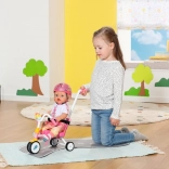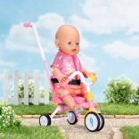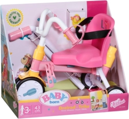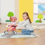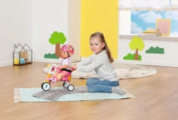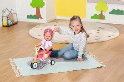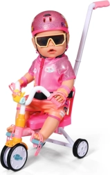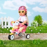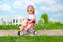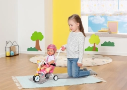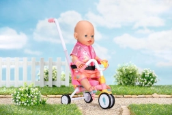 Ten różowy trójkołowy rowerek został zaprojektowany do realistycznej zabawy z lalkami BABY BORN. Dziecko może pchać lalkę za pomocą drążka prowadzącego o długości 45 cm lub pozwolić jej „pedałować” dzięki paskom na pedałach. Solidna konstrukcja i stabilne trójkołowe podwozie wspierają pewną jazdę w domu i na zewnątrz.