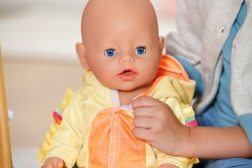 Strój idealny po „kąpieli” i do codziennej zabawy – miękki materiał grzeje, a jednocześnie jest wytrzymały dla długotrwałej frajdy. Świetnie pasuje do garderoby BABY born i akcesoriów do odgrywania ról.