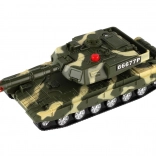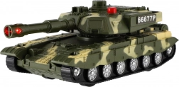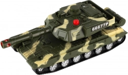 Rusz do akcji z solidnym plastowym czołgiem na napęd cierny, który po popchnięciu szybko mknie do przodu. Obrotowa wieża z długą lufą i realistyczne detale podwozia dopełnione są efektowną oprawą świetlną i dźwiękową, która wzmocni każdy scenariusz zabawy.