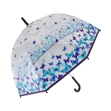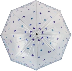 Ten parasol wyróżnia się atrakcyjnym designem niebieskich i fioletowych motylków, który nadaje Twojej stylizacji unikalny charakter.