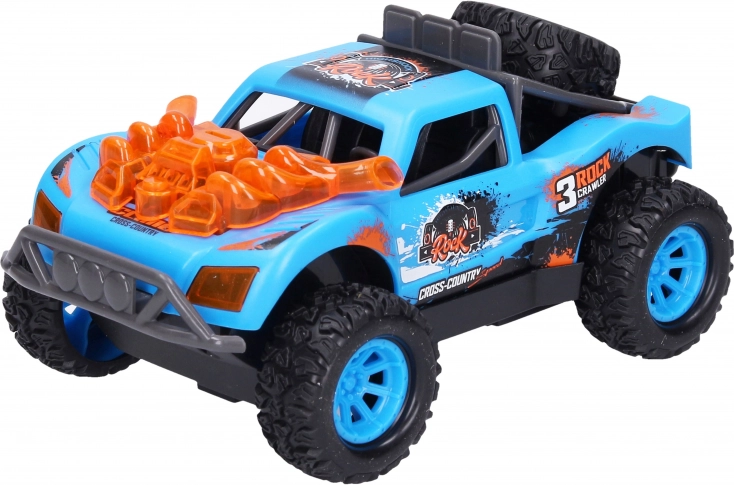 Jeszcze więcej frajdy zapewnią oświetlenie i dźwięk – aktywowane prostym naciśnięciem koła zapasowego z tyłu. W opakowaniu znajdziesz także 3× baterie AG13, więc możesz ruszyć od razu po rozpakowaniu. Do wyboru są dwa atrakcyjne kolory: niebieski i pomarańczowy.