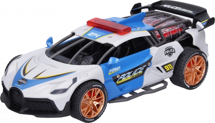 Wyrusz na akcję policyjną z autem, które zachwyca realistycznymi efektami i prostą obsługą. Dzięki napędowi ciernemu wystarczy popchnąć pojazd, aby płynnie pojechał do przodu, a efekty świetlne i dźwiękowe silnika dodają zabawie napięcia i atmosfery.