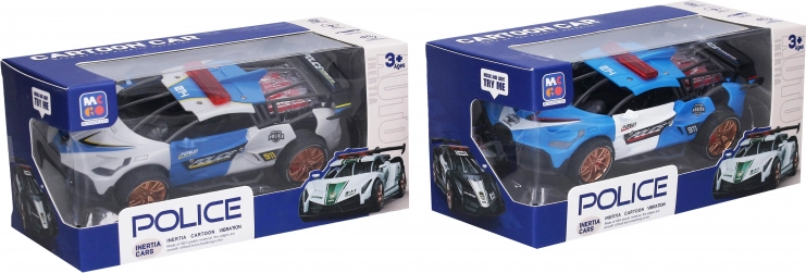 Stylowy policyjny samochód na napęd cierny zapewnia dzieciom mnóstwo zabawy – po popchnięciu rusza do przodu i oferuje efekty świetlne i dźwiękowe aktywowane naciśnięciem przedniej maski. Kompaktowe wymiary 18×8,8×6 cm, 3× baterie AG13 w zestawie oraz 2 wersje kolorystyczne (niebieska, szara).