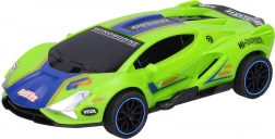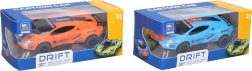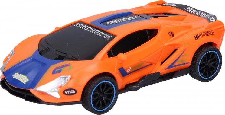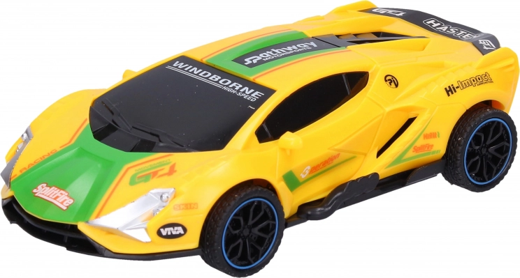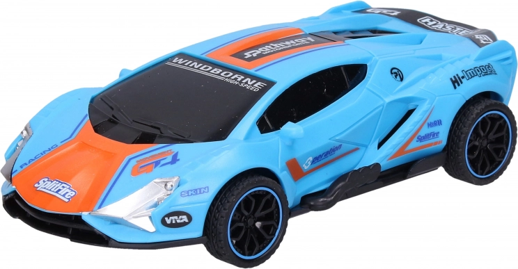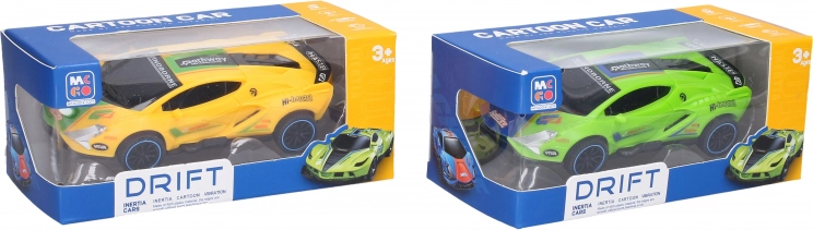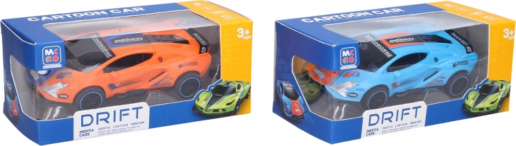 Driftujące wyścigowe autko na napęd sprężynowy o wymiarach 15,5 × 8 × 4 cm. Wystarczy je rozpędzić, a dzięki pionowo umieszczonemu kółku pośrodku podwozia samo driftuje. Dostępne 4 kolory – niebieski, zielony, pomarańczowy, żółty; zabawa bez baterii.