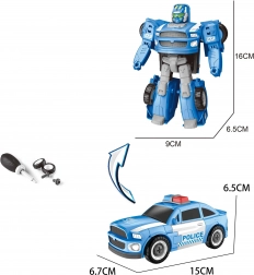 Zbuduj swojego policyjnego auto-robota dzięki dołączonemu śrubokrętowi. Model ma wymiary 15×6,7×6,5 cm i zawiera prostą obrazkową instrukcję montażu umieszczoną na spodzie opakowania.
