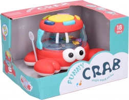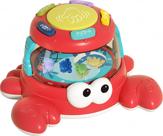 Kolorowy bębenek w kształcie kraba to doskonała zabawka dla młodszych dzieci, które odkrywają zdolności muzyczne i rytmiczne. Został zaprojektowany tak, aby przyciągać uwagę swoją kolorystyką i interaktywnymi funkcjami: