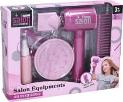 Dziecięca suszarka z akcesoriami o długości 19 cm ucieszy małe fryzjerki. Naprawdę dmucha powietrzem, oferuje 2 prędkości oraz praktyczne nasadki. W zestawie znajdują się grzebień i buteleczka na preparat dla jeszcze większej zabawy. Idealna do kreatywnej zabawy w salon fryzjerski.