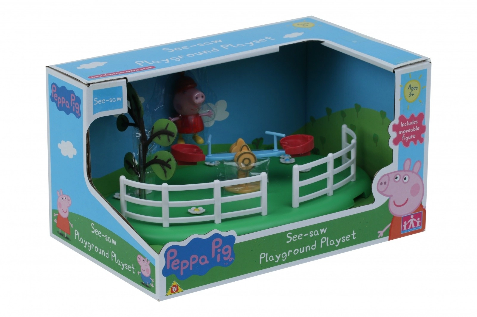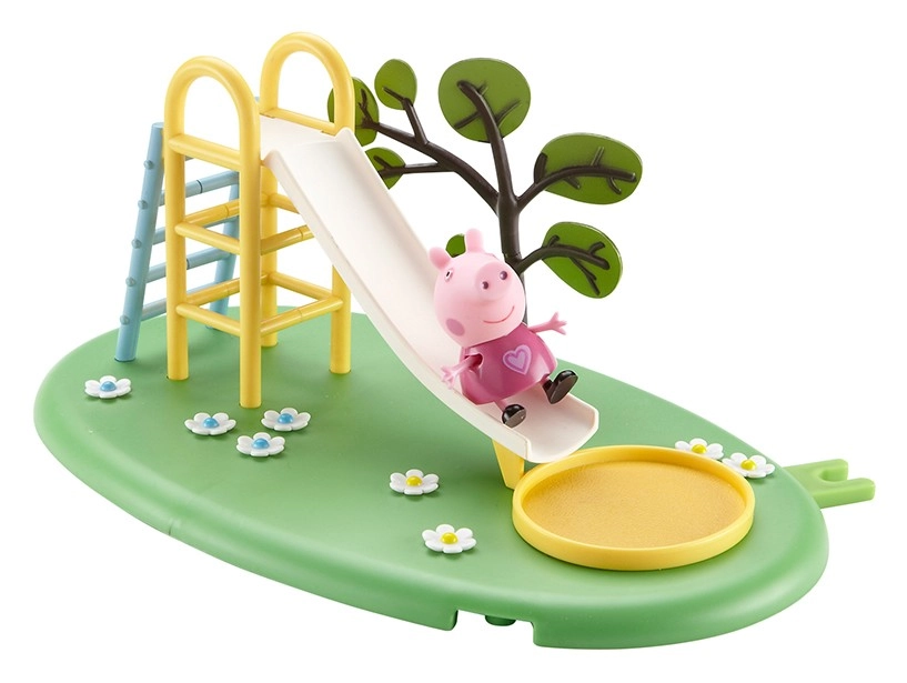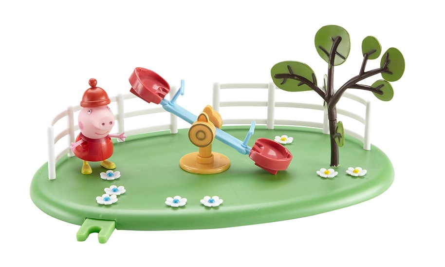 Poszczególne elementy można łatwo łączyć – zatrzaśnij zestawy ze sobą i stwórz własny duży plac zabaw. Każde opakowanie zawiera oryginalną figurkę Peppy, która pasuje także do innych małych figurek z tej serii.