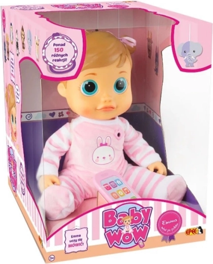 Odkryj interaktywną lalkę Emmę, która uczy się mówić i podczas mówienia naprawdę porusza ustami! Potrafi wypowiedzieć ponad 150 słów i fraz, obraca główką, śmieje się przy łaskotaniu brzuszka, a po przyłożeniu jej „smartfona” do ucha dzwoni do mamy, taty, babci lub dziadka. Idealna zabawka wspierająca rozwój komunikacji i wyobraźni.
