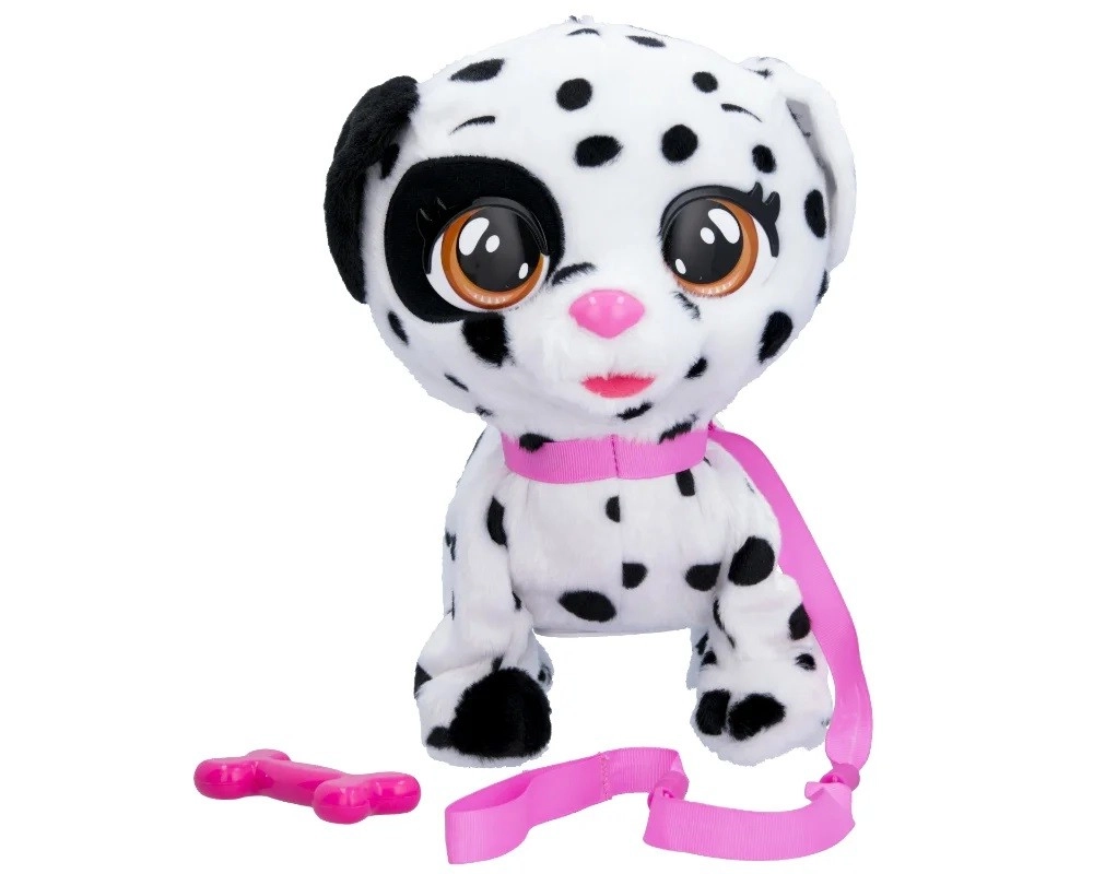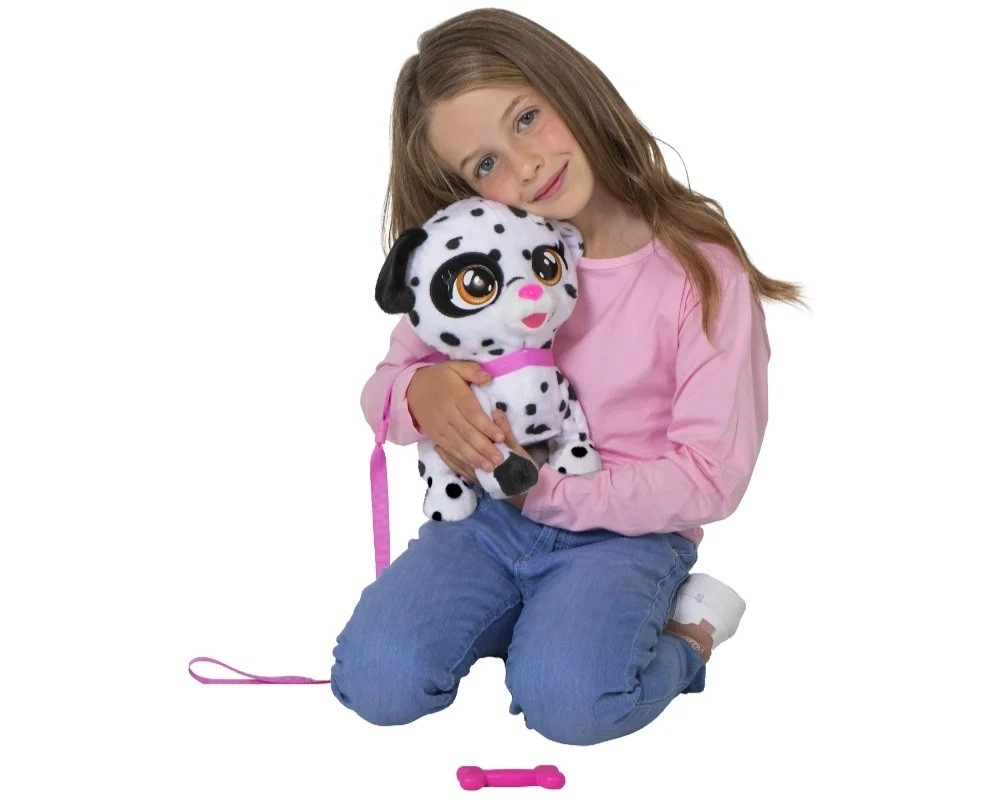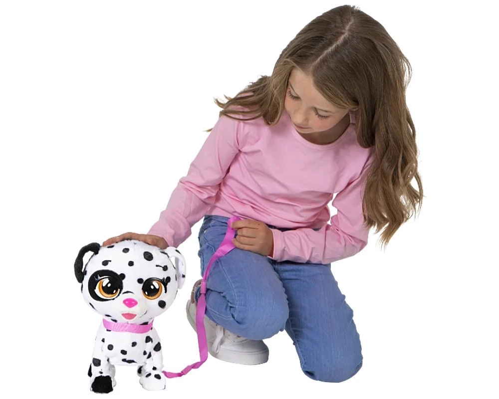 Ten interaktywny dalmatyńczyk nie tylko szczeka i merda ogonem, ale także płacze prawdziwymi łzami, gdy jest głodny lub się nudzi. Twoje dziecko nauczy się odpowiedzialności, opiekując się nim i dbając, aby zawsze był zadowolony. Wystarczy dać mu kość i pogłaskać, aby uspokoić i rozweselić swojego przyjaciela.