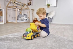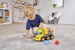 Ręce do zabawy! – z ciężarówką Harry doświadczysz realistycznych efektów dźwiękowych oraz możliwości manipulowania sorterem kształtów i innymi elementami zabawy.
