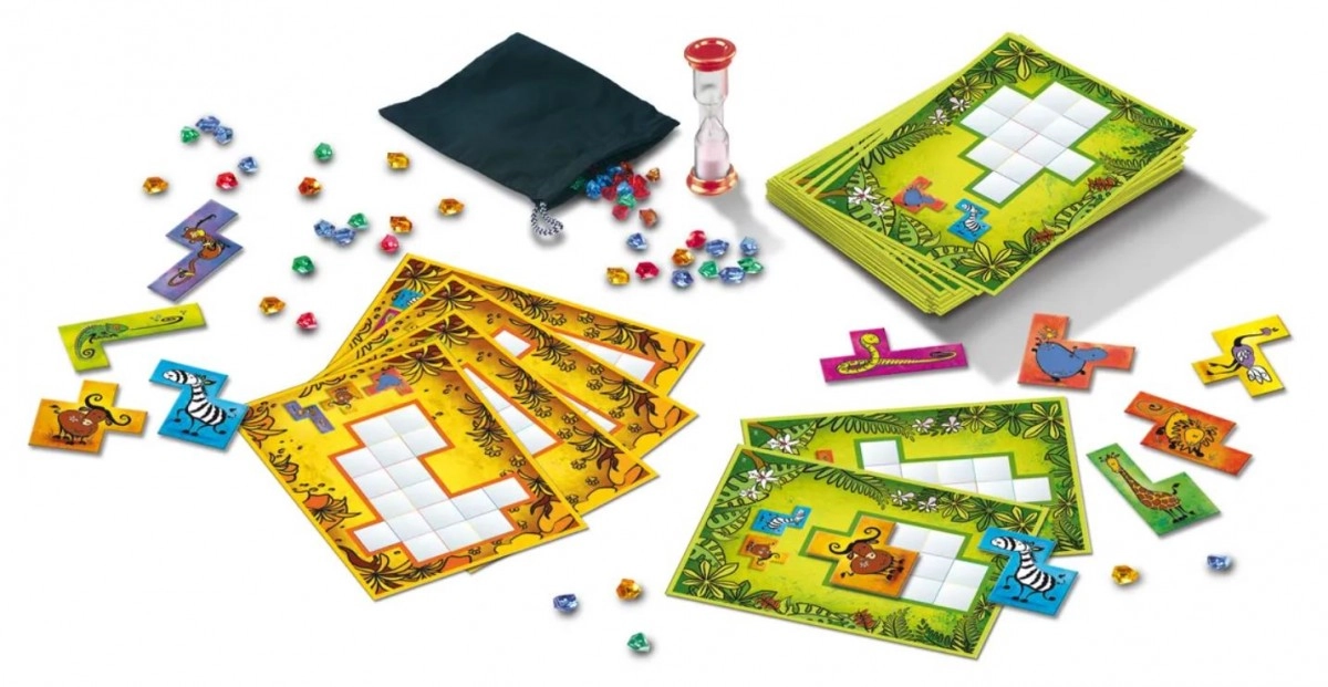 Z pięknymi dzikimi zwierzętami na kafelkach. Opowieści o dżungli. Afrykańskie zwierzęta lubią spotykać się na sawannie i w dżungli. Aby jednak spotkanie przebiegło gładko, muszą zająć swoje miejsca. Gracze starają się jak najszybciej ułożyć zwierzęta we właściwy sposób na planszy tak, aby nie pozostały żadne puste białe pola. Gracz, któremu uda się to jako pierwszemu, woła „Ubongo” i wyciąga z woreczka kryształ. Wygrywa gracz z najcenniejszą kolekcją kamieni.