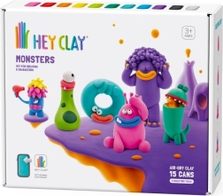 HEY CLAY Monsters to wesoły zestaw kolorowej piankowej masy, który pozwala dzieciom modelować oryginalne postacie potworków. Dzięki lekkiej i przyjemnej w dotyku teksturze masa łatwo się formuje, nie przykleja się do rąk, a po zabawie można ją przechowywać w szczelnie zamkniętych kubeczkach. Aplikacja z interaktywnymi instrukcjami prowadzi dzieci krok po kroku i pomaga stworzyć sześć unikalnych postaci.