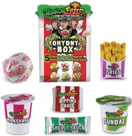 Zestaw TERROR FRIED – Ohydne pudło to jak horror z fast foodu: w środku znajdziesz odrażająco zabawne kombinacje, które musują, kleją się, trzeszczą i aż proszą się o ugniatanie. Idealny dla dzieci, które kochają zwariowany humor, kolekcjonowanie figurek i wrażenia dotykowe.