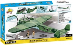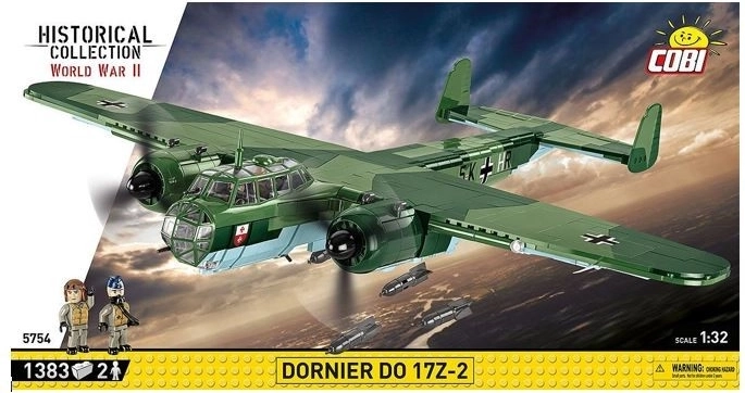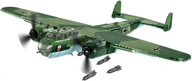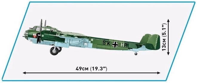 Ten wielkoformatowy model bombowca Dornier Do 17Z-2 wyróżnia się imponującą rozpiętością skrzydeł 57,5 cm i długością 49 cm. Dzięki nowym elementom wykonanym techniką dwukolorowego wtrysku precyzyjnie oddaje charakterystyczny kształt nosa i kabiny. W kokpicie z nadrukowanymi przyrządami posadzisz dwie dołączone figurki pilotów. Wszystkie detale graficzne to trwałe nadruki – żadnych naklejek.