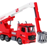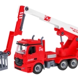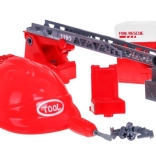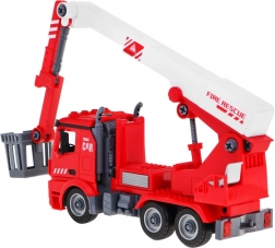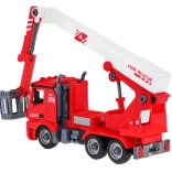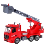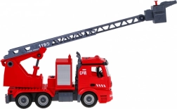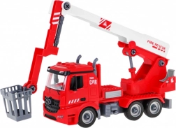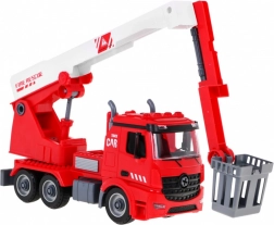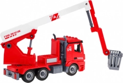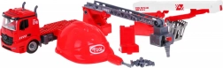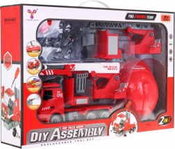 Zestaw obejmuje wóz strażacki 2w1, który dzieci mogą samodzielnie złożyć przy użyciu dołączonych narzędzi i części. Pojazd jest wyposażony w wymienny, rozciągany i obracający się podnośnik z koszem lub sikawką na wodę, która naprawdę działa. Ten pojazd jest zasilany 3 bateriami typu LR44, które są częścią zestawu. Emituje autentyczne efekty dźwiękowe i świetlne, takie jak dźwięk syreny, klakson lub uruchamianie silnika. Do zestawu należy również hełm, dzięki któremu dzieci mogą poczuć się jak prawdziwi strażacy.