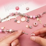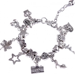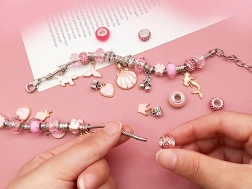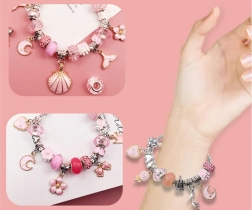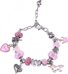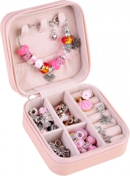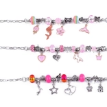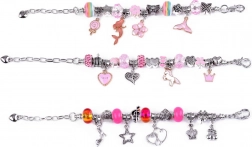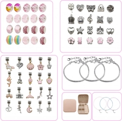 Zestaw zawiera wszystko, co potrzebne do tworzenia pięknych bransoletek i naszyjników: różne koraliki, zawieszki i sznurki.