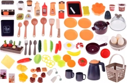 - Zestaw 88 akcesoriów w tym garnki, patelnia, przybory, naczynia, produkty i napoje