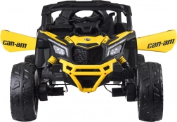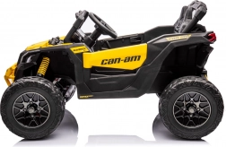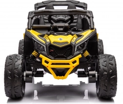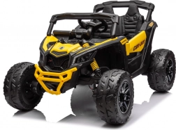 Wytrzymały samochód buggy dla dzieci z napędem 4x4, mocą 800 W (4× 24 V / 200 W) i akumulatorem 24 V 5 Ah zapewnia bezpieczną i zabawną jazdę po trawie, asfalcie oraz w lekkim terenie. Oferuje płynny start, miękkie koła EVA, oświetlenie LED, pięciopunktowe pasy, wygodne siedzisko z eko-skóry oraz rodzicielski pilot 2,4 GHz dla pełnej kontroli.