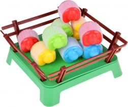 - 16 kolorowych owieczek, 4 wyrzutnie, plastikowa zagroda, instrukcja (EN)