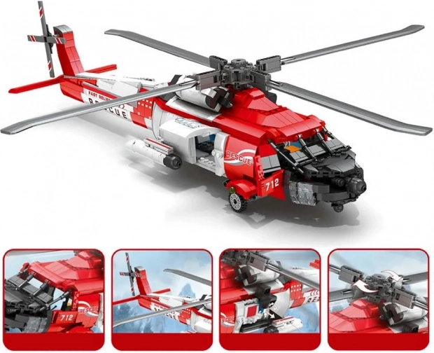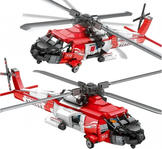 Obracające się główne i ogonowe wirniki, szczegółowy kokpit oraz podwozie z kółkami wspierają kreatywne scenariusze misji ratunkowych i realistyczną ekspozycję.