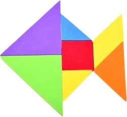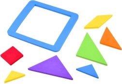 Klasyczny tangram w nowoczesnym, piankowym wydaniu oferuje godziny mądrej zabawy. Z ośmiu elementów wraz z ramką możesz ułożyć dziesiątki sylwetek i obrazków – według wzorów lub własnej fantazji. Miękki materiał jest przyjemny w dotyku i bezpieczny dla dzieci.