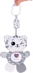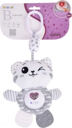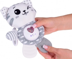 Uroczy pluszowy kociak dla najmłodszych łączy aż trzy funkcje: interaktywne melodie, delikatne grzechotanie i szelest oraz miękki gryzak przynoszący ulgę przy ząbkowaniu. Przyjemny szaro-biały design, mięciutki materiał i praktyczne pętelkowe zawieszanie czynią z niego idealnego towarzysza do łóżeczka, wózka i fotelika samochodowego.