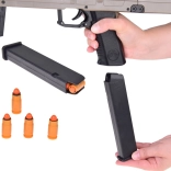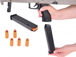 Ten plastikowy piankowy pistolet maszynowy wykonano z wysokiej jakości materiałów i zachwyca dopracowanym wykończeniem. Realistyczny wygląd i bogate akcesoria czynią go idealnym wyborem do dziecięcych potyczek, treningu celności i rywalizacji drużynowej. Dzięki łatwemu ładowaniu i odłączanemu magazynkowi zabawa jest płynna i intuicyjna.