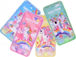 Kieszonkowa wodna gra z motywem jednorożca w kształcie telefonu dostarcza rozrywki dzieciom i dorosłym. Naciskając przyciski, wprawiasz wodę w ruch i próbujesz założyć kolorowe kółeczka na bolce. Gra wspiera koncentrację, cierpliwość i małą motorykę. Dzięki kompaktowym wymiarom jest idealna w podróż, do szkoły i na przerwy. Kolor wysyłany losowo.