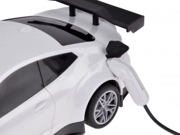Przeżyj realistyczną jazdę ze sportowym autem RC z perłowym lakierem i tylnym spojlerem. Dzięki intuicyjnemu kontrolerowi dzieci łatwo opanują jazdę do przodu/tyłu oraz skręcanie w prawo/lewo. Atmosferę dopełnią kolorowe światła, dźwięk klaksonu i 4 motywy muzyczne.