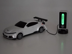 W zestawie znajduje się stacja ładowania zasilana przez USB, która umożliwia wygodne uzupełnianie energii auta w dowolnym miejscu. Na spodzie pojazdu można dodatkowo ustawić prędkość dla bezpiecznej i płynnej jazdy.