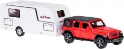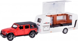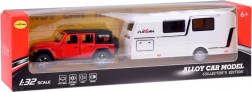 Samochód terenowy z przyczepą kempingową ze światłami i dźwiękami 1:32 – czerwone