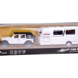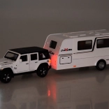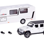 Samochód terenowy z przyczepą kempingową ze światłami i dźwiękami 1:32 - biały