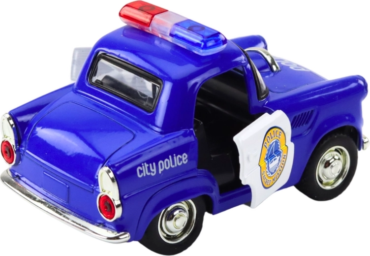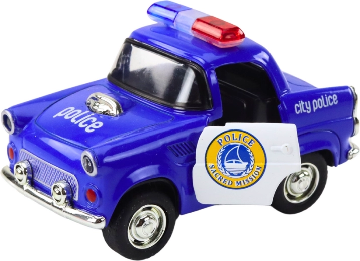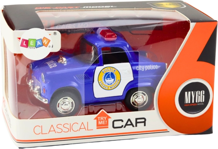 Klasyczny radiowóz w eleganckim niebieskim kolorze to doskonała replika prawdziwych samochodów policyjnych, która zachwyci zarówno dzieci, jak i dorosłych. Posiada napęd frykcyjny, który po naciągnięciu do tyłu szybko rusza do przodu, co pozwala symulować realistyczne policyjne pościgi lub patrole.