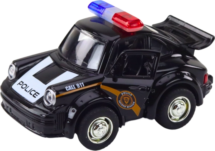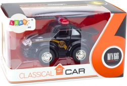 To eleganckie czarne policyjne auto w skali 1:38 doceni każdy miłośnik klasyków motoryzacji. Wyposażone w napęd frykcyjny, który umożliwia szybki ruch do przodu po naciągnięciu do tyłu.
