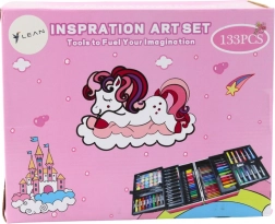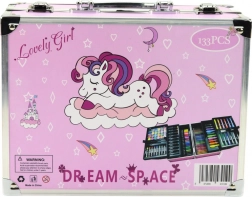 Zestaw artystyczny w rozszerzanej walizce.Zestaw artystyczny w rozkładanej walizce ozdobionej pięknym motywem jednorożca. To idealny prezent dla każdego małego artysty, który przeniesie go do świata fantazji i kreatywności!