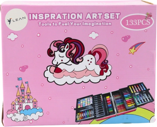 Zestaw artystyczny w rozszerzanej walizce z jednorożcem 133 szt.