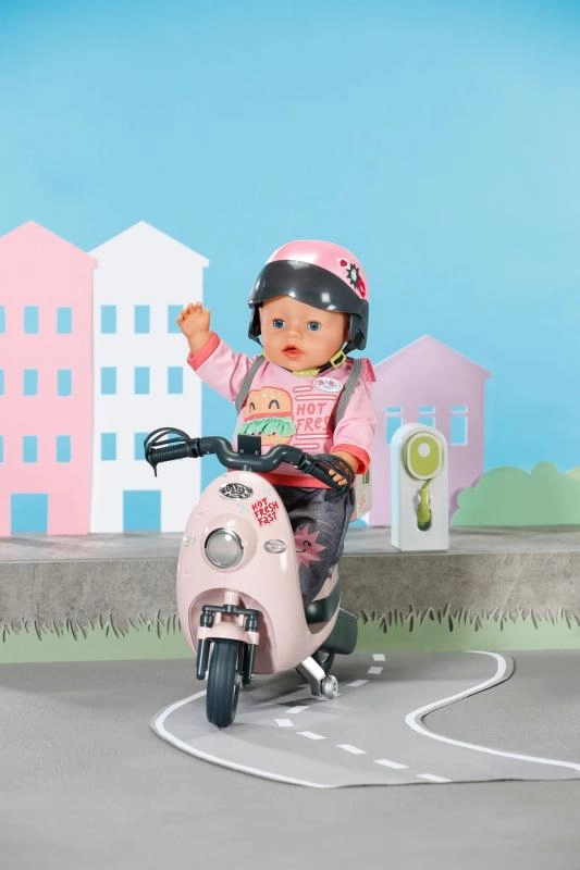 Ten różowy elektryczny skuter to doskonały dodatek do kreatywnych zabaw z lalką BABY born. Dzieci mogą łatwo sterować kierunkiem jazdy za pomocą pilota, a realistyczne elementy, takie jak światła, stopka i funkcjonalne detale, wspierają wyobraźnię oraz rozwój motoryki.