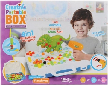 Ten skręcany zestaw konstrukcyjny rozwija dziecięcą wyobraźnię i zręczność. Dzięki łatwej w obsłudze wiertarce na baterie oraz przejrzyście przechowywanym elementom w walizce, która służy także jako baza, budowanie jest proste i przyjemne.