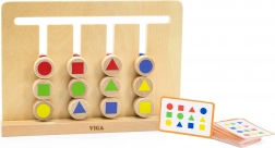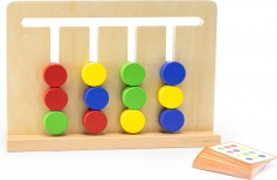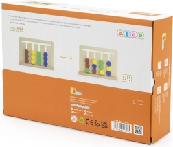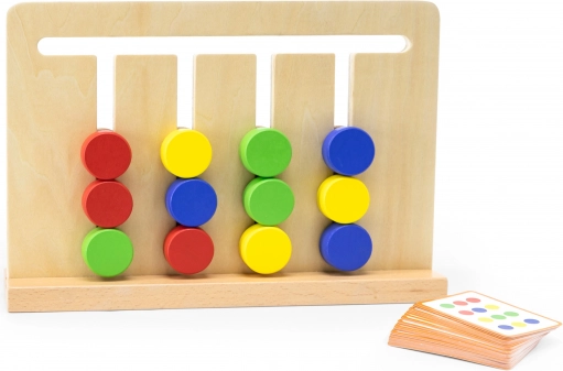 Ta pomysłowa i trwała pomoc rozwija myślenie logiczne, małą motorykę oraz koncentrację. Dzieci układają klocki w odpowiednich miejscach i odwzorowują karty z zadaniami – najpierw według kolorów, później według kształtów geometrycznych. Gra naturalnie prowadzi do planowania sekwencji ruchów i ćwiczy cierpliwość.