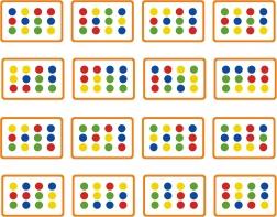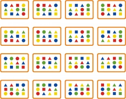 Dzieci układają klocki tak, aby odpowiadały wzorowi na karcie. Zaczynają od prostszych, kolorowych układów i płynnie przechodzą do figur geometrycznych.