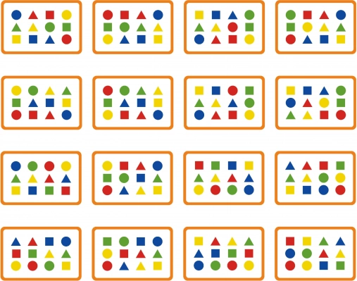 - 12 dwustronnych klocków – kolory z jednej strony, kształty z drugiej