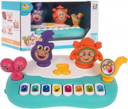Każdy klawisz odtwarza inny instrument, co wspiera rozróżnianie dźwięków i pierwsze muzyczne eksperymenty.