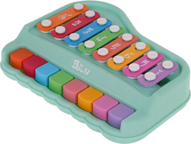 Ta urocza muzyczna zabawka łączy pianinko i ksylofon w jednym kompaktowym zestawie, który rozwija słuch, poczucie rytmu i małą motorykę. Dzięki żywym kolorom naturalnie przyciąga dzieci i wspiera kreatywną zabawę oraz pierwsze muzyczne próby.