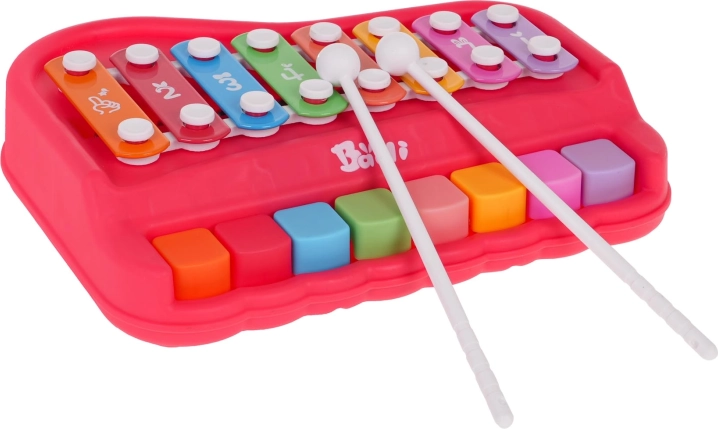 Muzyczne pianinko i ksylofon 2w1 dla najmłodszych od 18 miesięcy wspiera rozwój rytmu i motoryki. Wykonane z wysokiej jakości plastiku i metalu, ma żywe kolory, a w zestawie znajdują się 2 pałeczki do łatwej gry i odkrywania dźwięków.