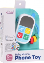 Interaktywny telefon dla dzieci od 6 miesięcy. Wykonany z najwyższej jakości materiałów w wesołych kolorach, bezpieczny dla najmłodszych bez ostrych krawędzi. Telefon jest zasilany bateriami 3 x AAA 1,5 V (nie dołączone).