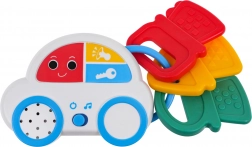 Interaktywne autko z kluczykami zapewnia dzieciom świetną zabawę dzięki efektom dźwiękowym, takim jak odgłosy uruchamiania silnika czy klaksonu, a także prezentuje 18 melodii. Dzięki różnym funkcjom autko może służyć również jako gryzak, co jest szczególnie pomocne podczas ząbkowania.